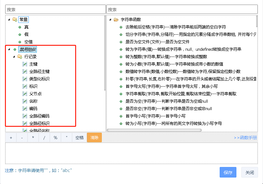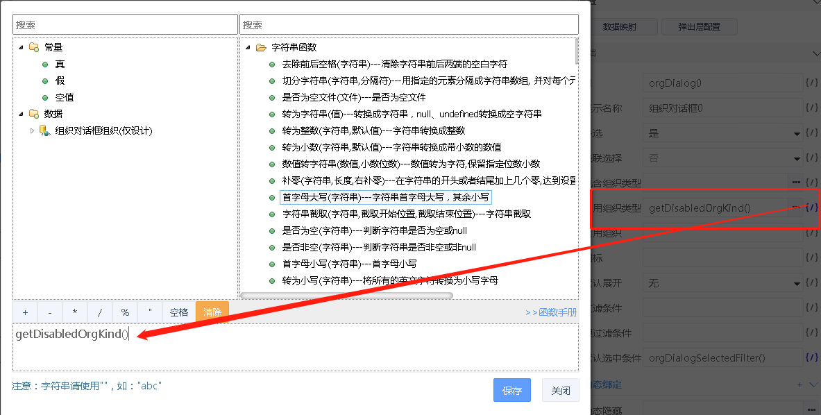 定义js函数返回需要禁用的组织类型,多个用逗号分开,如下: