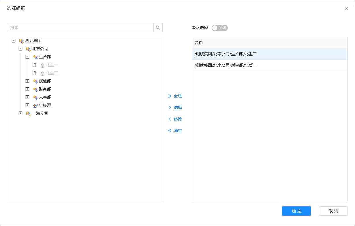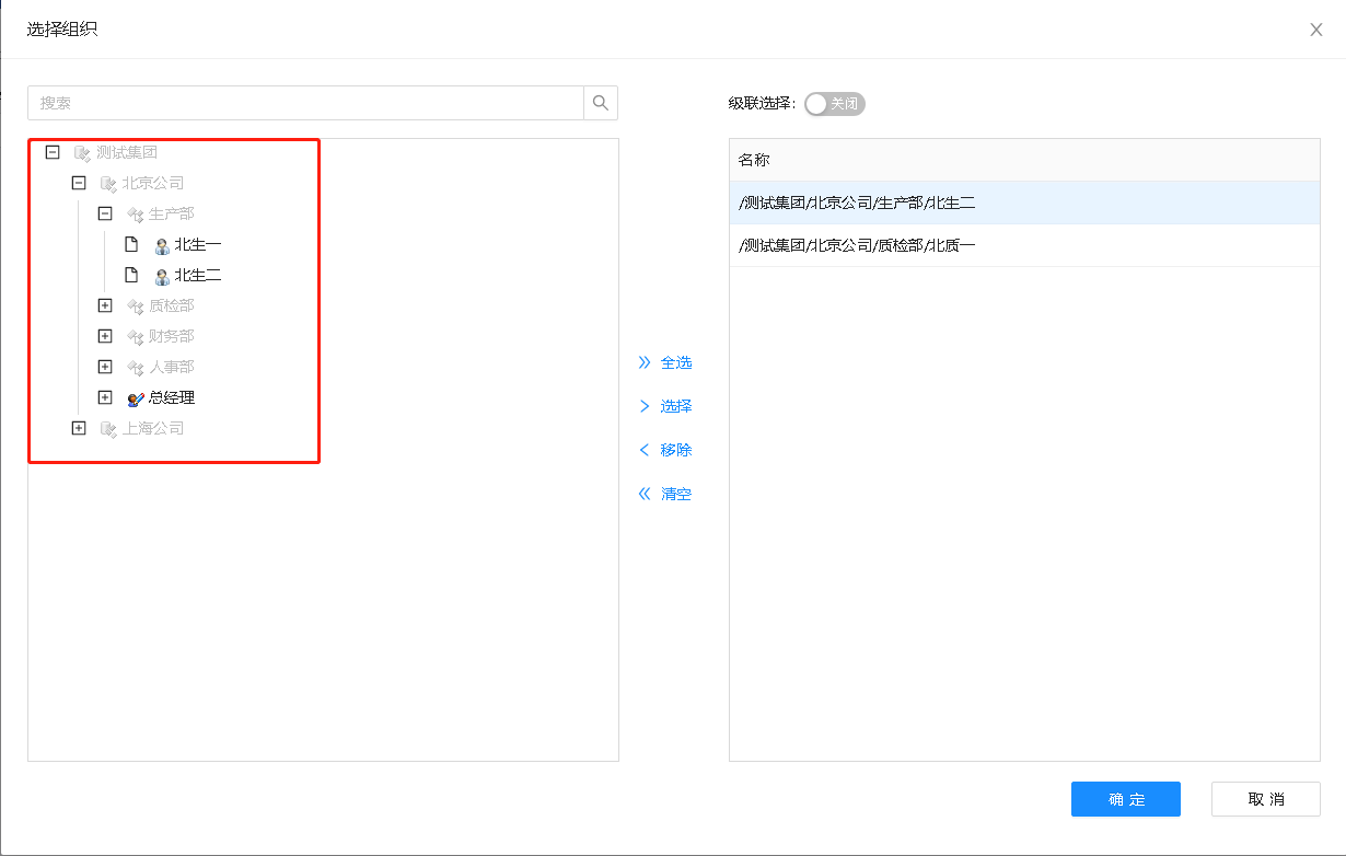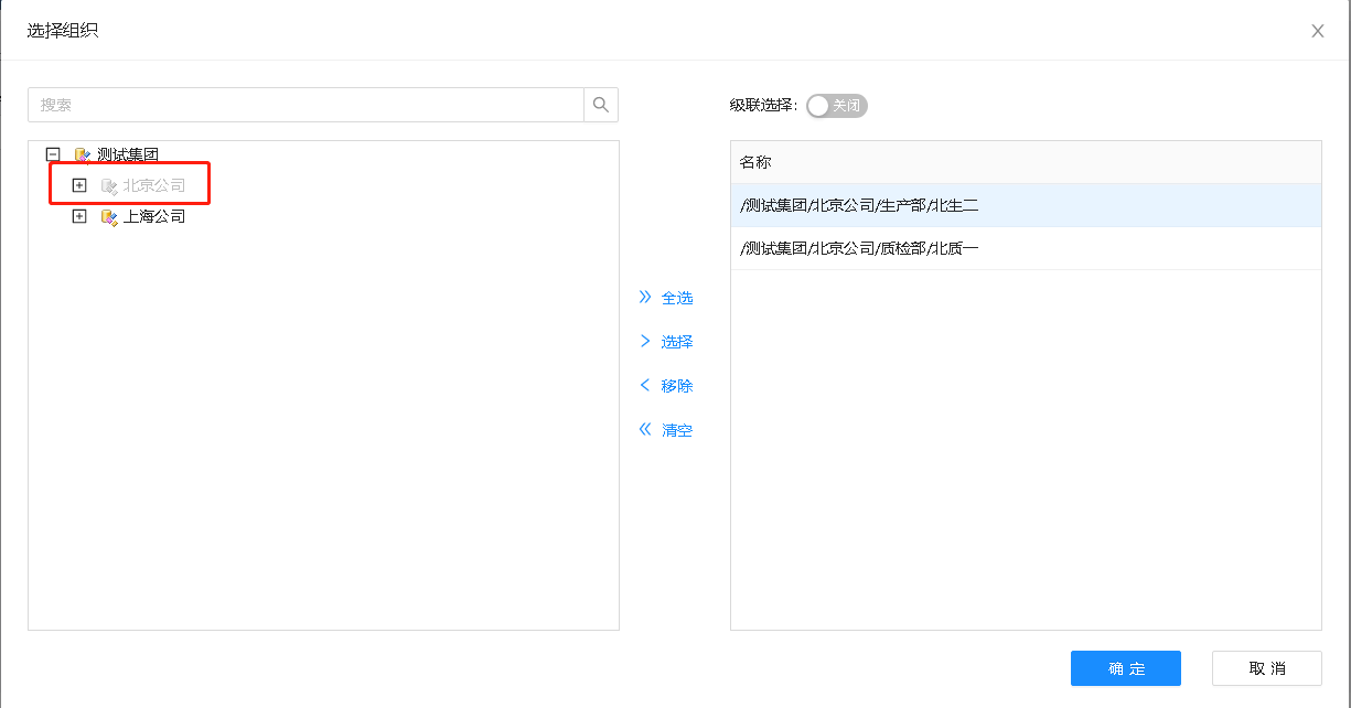 控制组织对话框打开时,某些组织或者某些组织类型的数据不能选择