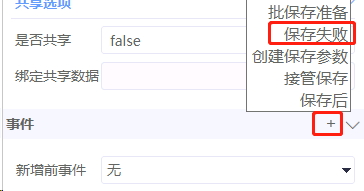 1. 在数据集的事件中,点击+添加“保存失败”事件