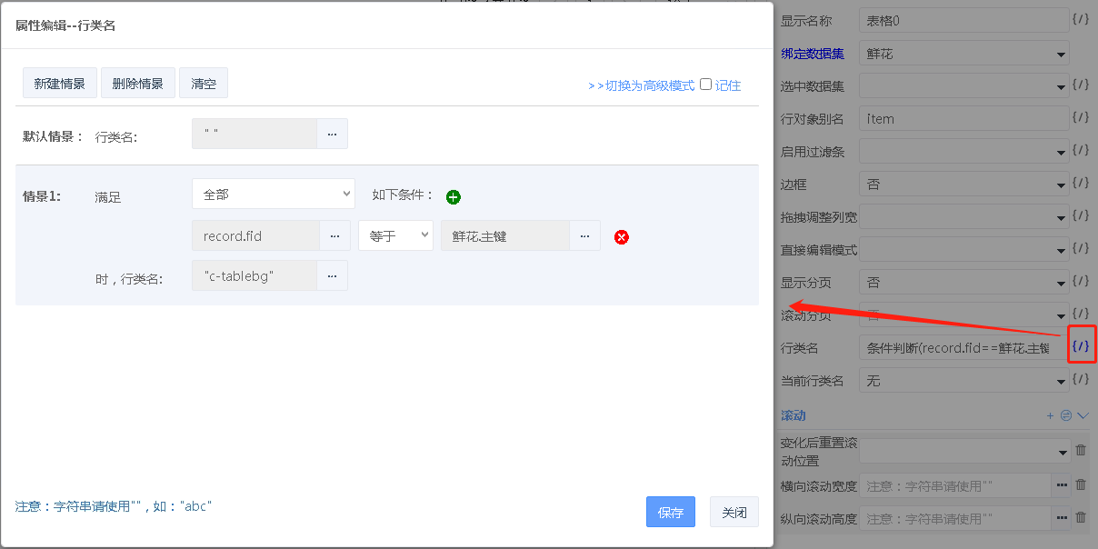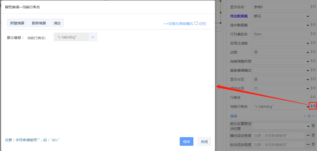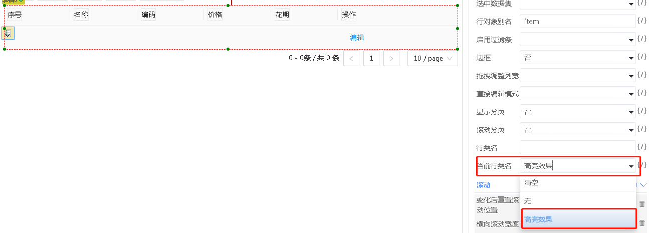 方案一、使用组件提供的“当前行类名”的“高亮效果”设置