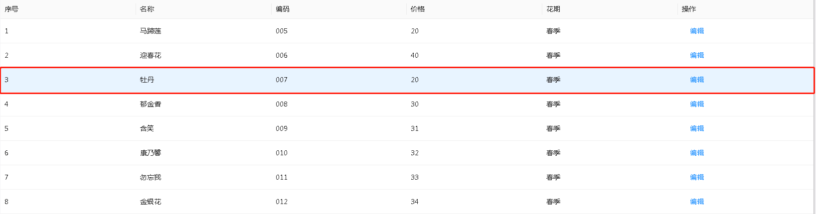 在表格组件提供的当前行类名属性设置“高亮效果”