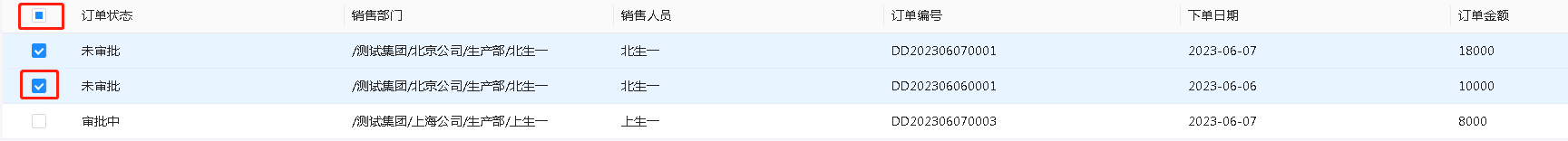2.运行时可以通过勾选表头上的全选进行全选,或者单独勾选某行上的选择框