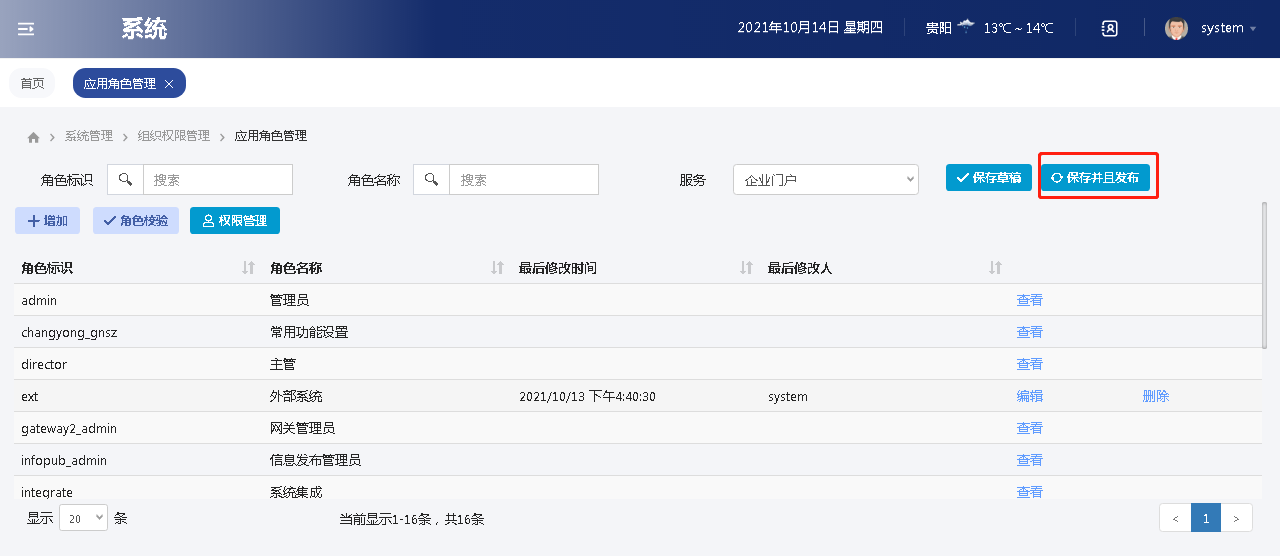 • 添加完成,点击保存并且发布按钮,更新到运行环境