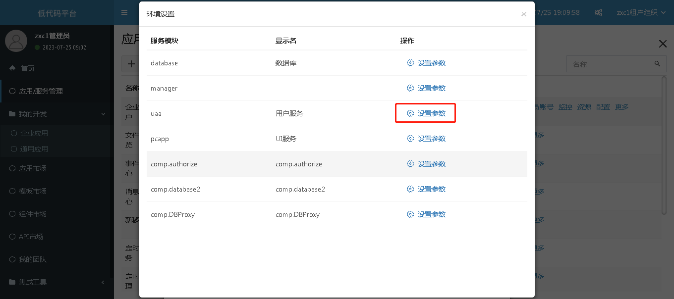 点击uaa右侧的设置参数按钮,打开参数配置对话框