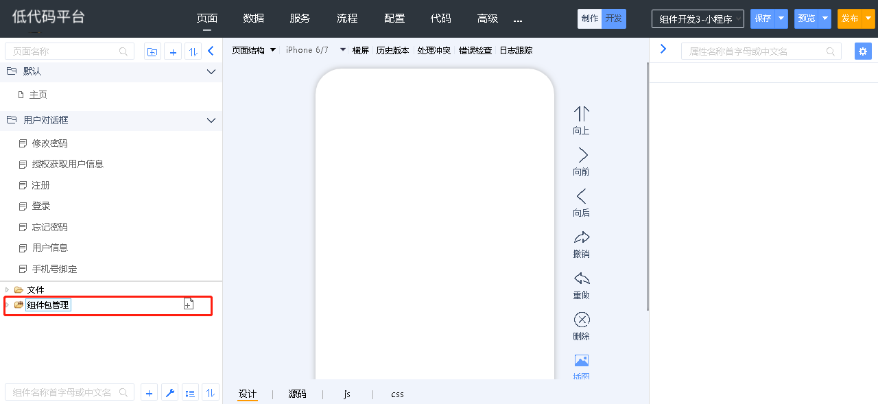 切换到页面设计区,点击“组件包管理”右侧的“新建组件包”按钮