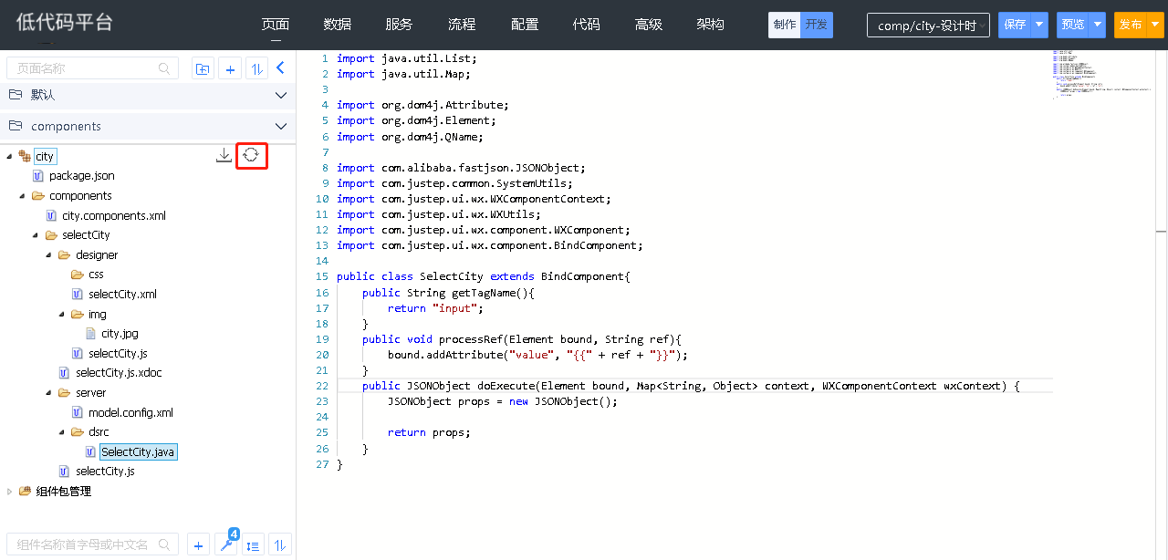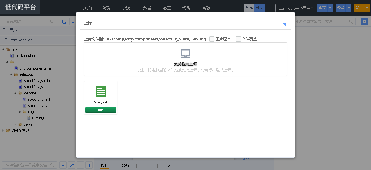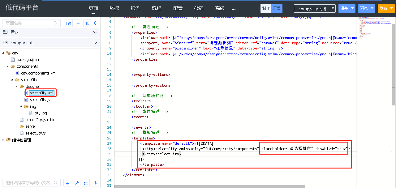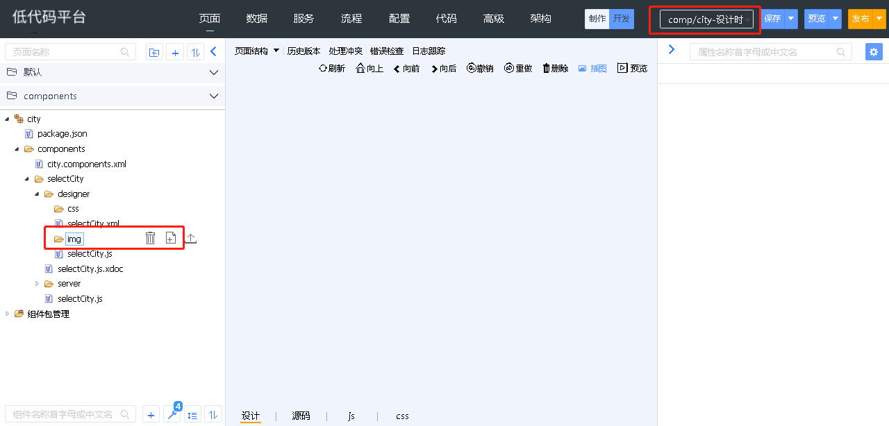 编辑组件的设计时文件时,切换到“comp/city-设计时”端
