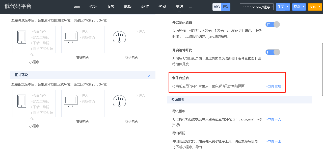 切换到组件设计端,点击city组件包右侧的导出按钮,导出city.zip文件