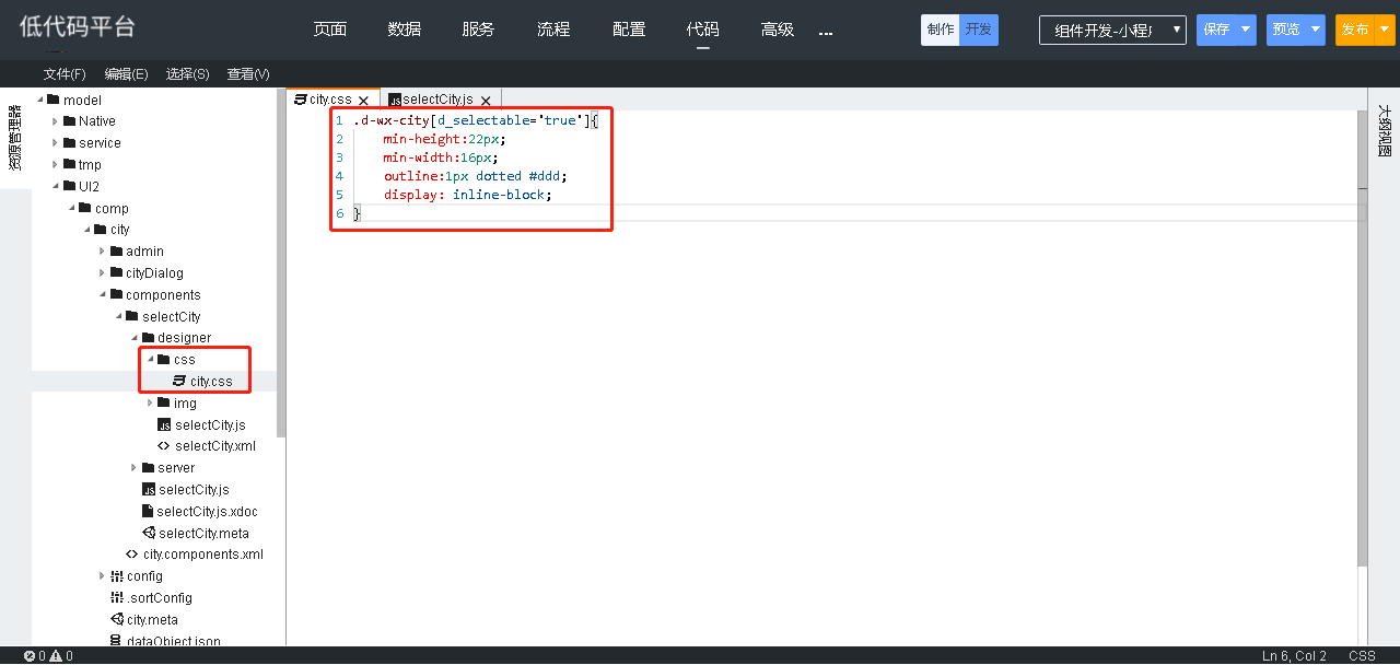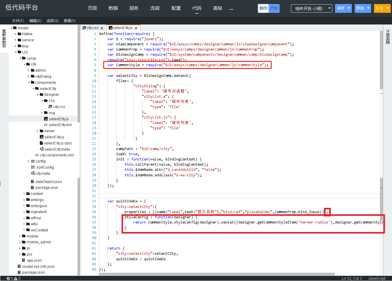 打开设计时JS文件,引用city.css文件,给组件增加样式