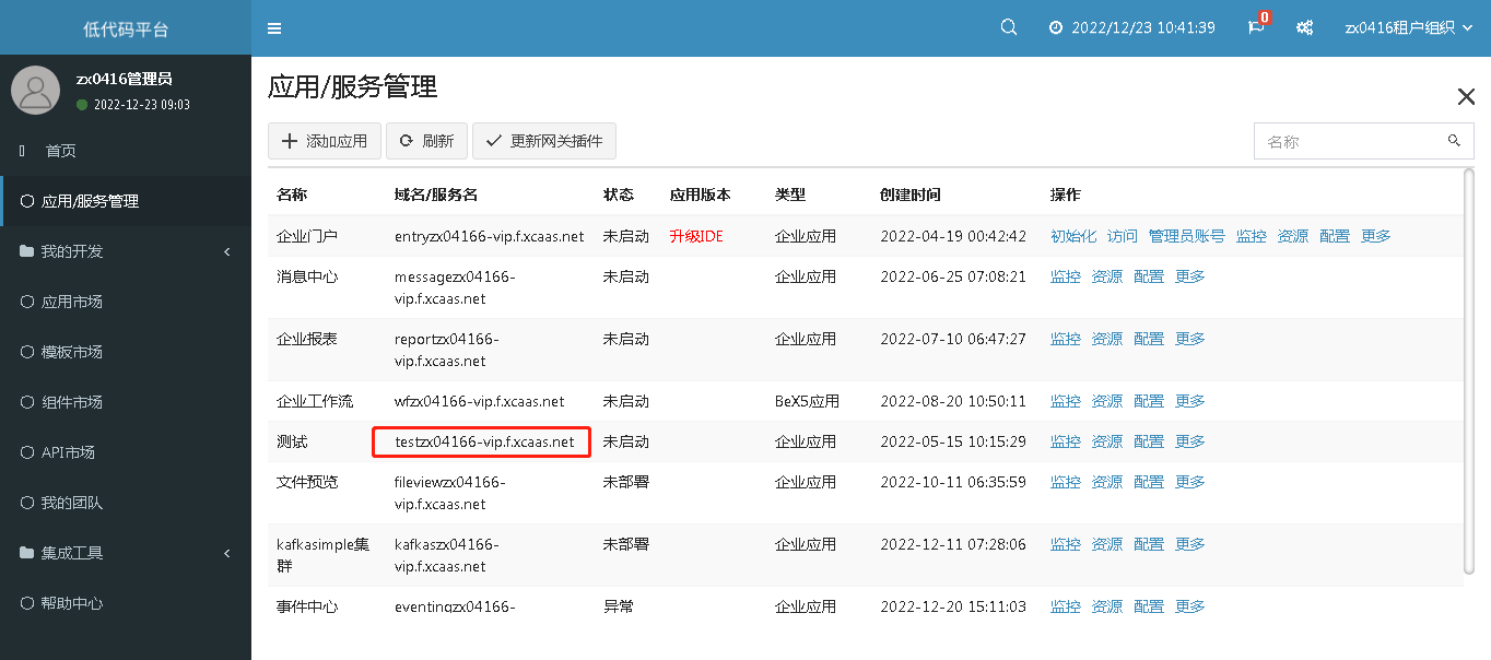 应用启动不起来,在应用服务管理中找到应用的服务名
