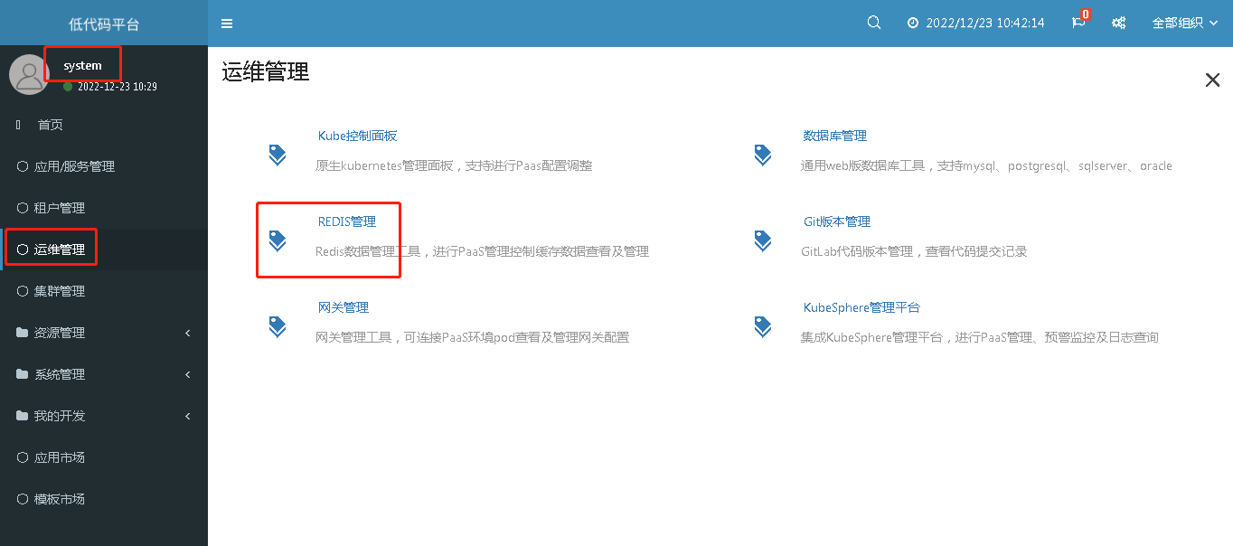 - 使用租户管理员,在应用/服务管理中,点击应用右侧的资源按钮,进入业务数据库