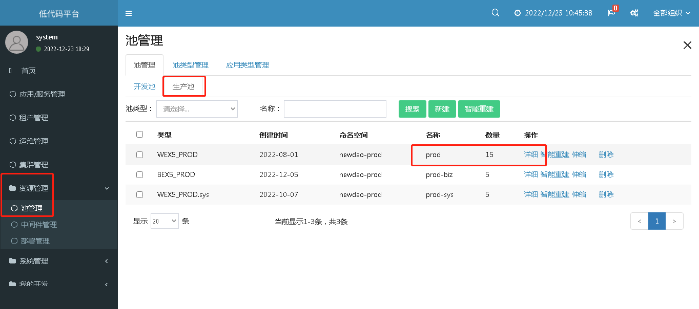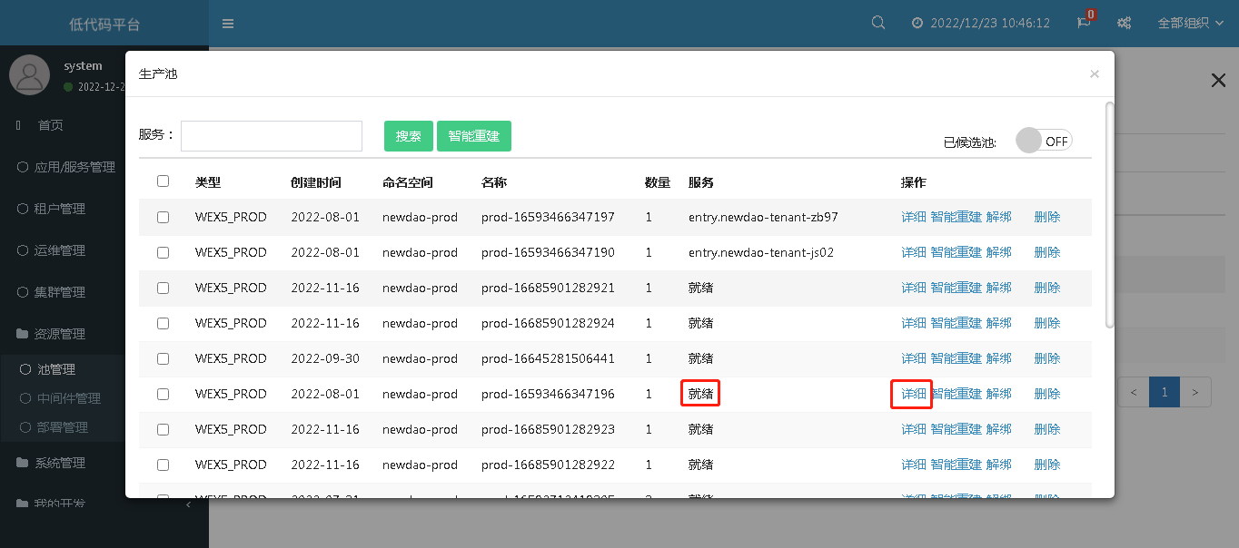 - 应用启动不起来,点生产池,选择类型为WEX5_PROD的池