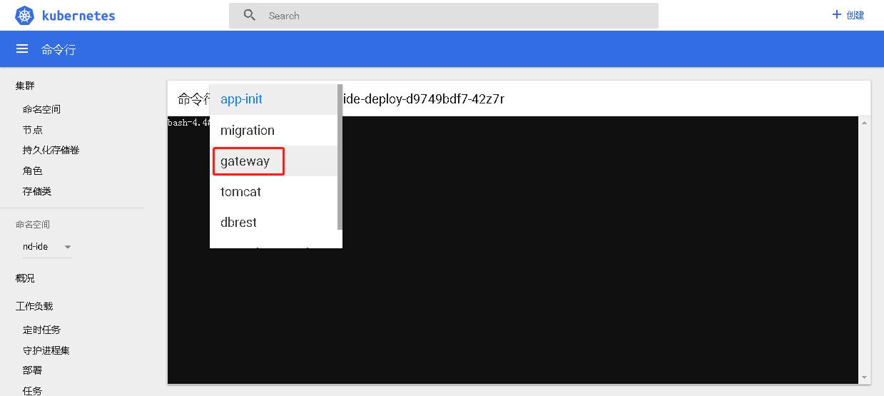 选择“命令行”,切换到gateway,依次执行下面的代码,其中RESOURCE_ID就是proxy-deploy日志中输出的用户资源ID