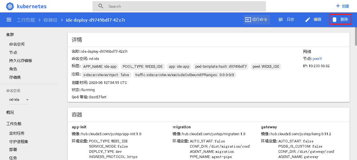 - 看完日志后删除pod,如下图所示