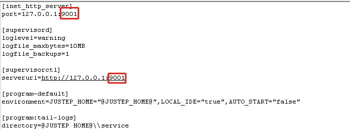 9001端口配置修改newdao-ide-windows\service\supervisord-win.tmpl.conf中如下端口的配置: