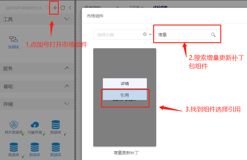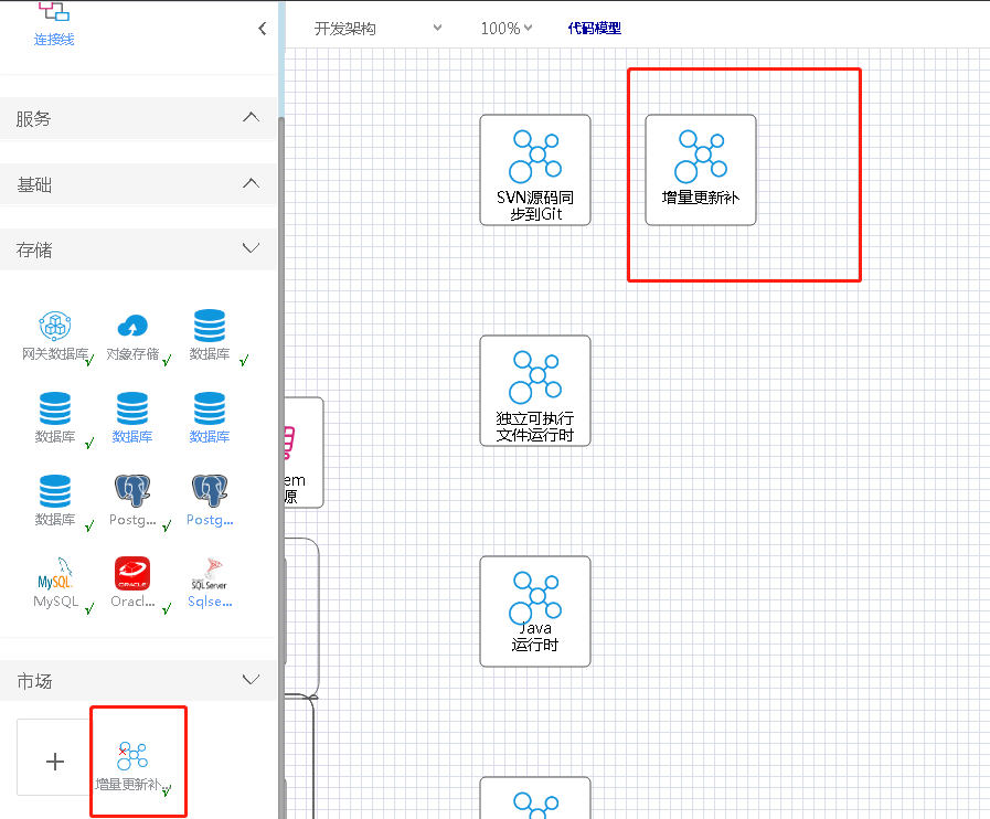 3.拖拽增量更新补丁组件到架构中,点保存并根据提示重启ide