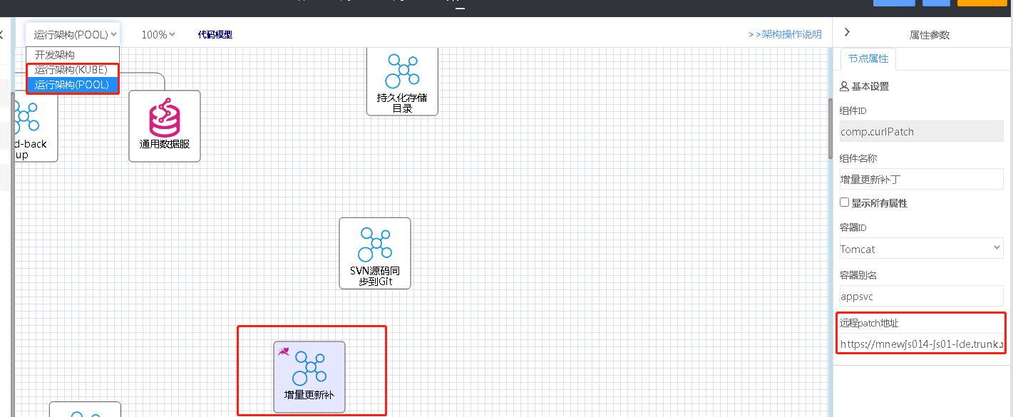 运行租户中应用是池模式部署切换到运行架构(POOL)配置远程patch地址,是kube模式部署切换运行架构(KUBE)配置远程patch地址,如果不确定可以两个下面都配置远程patch地址