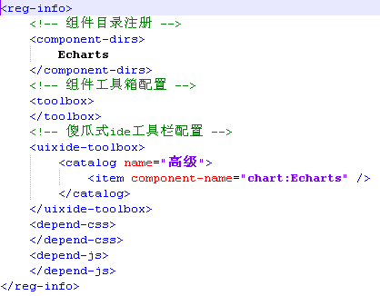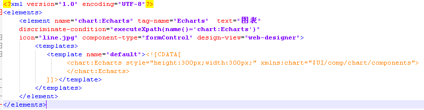 打开组件模板文件 UI2/comp/chart/components/Echarts/designer/Echarts.xml,如下图所示