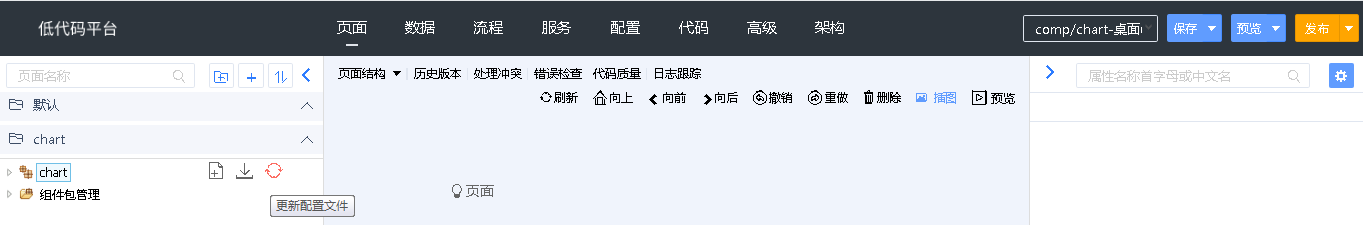 切换到chart开发端后,点击chart组件包右侧的“更新配置文件”按钮,如下图所示。
