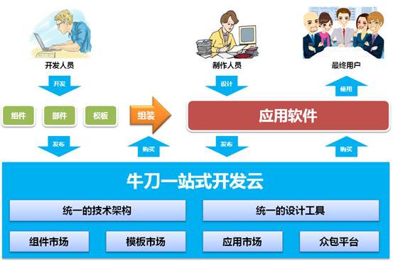 牛刀云是北京起步科技股份有限公司推出的一站式开发云平台,集制作、开发、测试、部署、运维于一体的全功能开发云平台。支持开发各种类型的应用,包括小程序、APP、公众号、PC应用、电视应用及企业应用。支持一次开发,多端任意部署,实现敏捷开发。同时支持开发多端应用,共享数据和服务。不仅支持个人开发,还支持团队开发。
