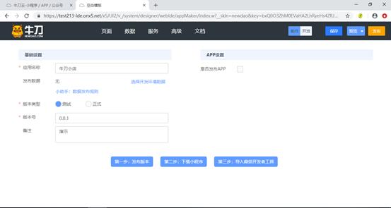 在牛刀云中制作小程序一共有3个环境,分别是开发环境、测试环境和正式环境。在3个环境中都可以运行商户端和客户端,它们的区别是: