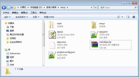 下载后的文件名是mainApp.zip,解压到某个目录下,例如:D:\微信小程序\shop。解压后的目录结构如图2-15所示。