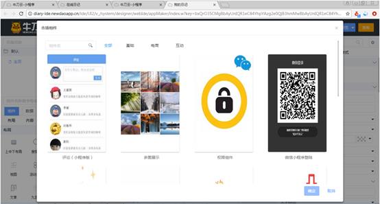 通过上节可以了解到,图片组件只能显示一张图片,如果要显示多张图片,需要使用“多图展示”组件,这个组件不是基础组件,可以从市场中下载后使用。从市场中下载组件的方法是:单击组件栏右上方的“添加市场组件”按钮,打开“市场组件”对话框,找到“多图展示”组件,如图3-29所示。将鼠标滑动组件封面上方,显示“详情”和“引用”两个按钮,单击“引用”按钮,再单击“确定”按钮,稍后,组件下载完成,显示在组件栏的市场分组中。