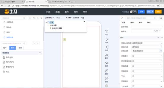 上面2种方法设置的文字都是静态的,通过调用“通用API”的“设置页面标题”操作,可以动态设置页面标题文字。例如:在“商品详情”页面中,将商品名称作为标题,页面组件的“页面加载完成”事件选择“设置页面标题”操作,“页面标题”属性选择“商品.商品名称”,如图4-16所示。