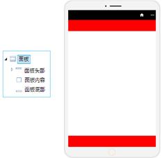 上中下布局组件默认自动充满父容器,分为上中下3个区域,每个区域都可以设置背景色,如图4-30所示,其中“面板头部”固定显示在页面顶部,“面板底部”固定显示在页面底部,“面板内容”自动充满剩下的区域。当面板内容长度超出面板内容区域的高度时,可以通过滑动查看下面的内容,此时面板头部和面板底部固定不动,仅面板内容区域中的内容上下滚动。