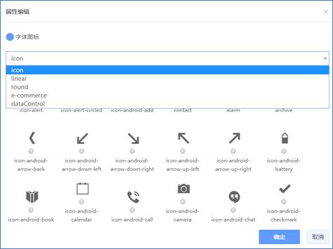 图标组件提供2个特有样式:图标和图标样式。图标就是选择一个系统提供的图标,系统提供了几百个图标,可以单击…按钮打开选择图标对话框,如图4-5-6所示,图标样式就是设置图标的大小和颜色。