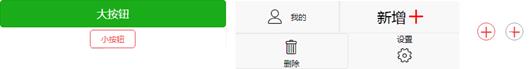 按钮组件,可以设置显示的图标、文字、大小以及颜色等样式。图4-5-8展示了按钮的多种风格。