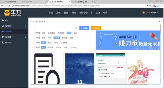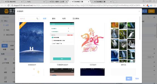 在“我的市场”中搜索需要的组件,“市场”选中“组件”,“平台”选中“小程序”,下面列出小程序中可使用的组件,如图4-79所示。