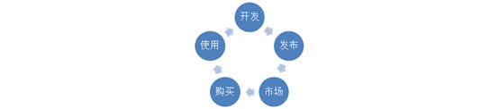 牛刀云提供了很多组件,这些大多是基础组件,功能相对单一。制作者如果直接使用特定业务场景组件,制作会更简单更快捷,这就是牛刀云倡导的组件生态圈,如图4-78所示。组件开发者将组件上传到市场,组件使用者从市场中购买并使用组件。