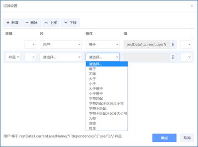 可以添加一个或多个过滤条件。每个过滤条件需要设置列、操作和值。