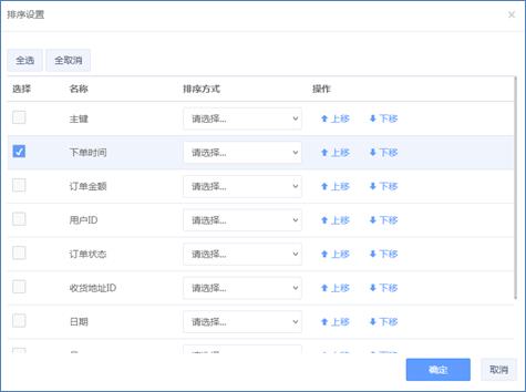 如果设置了多个排序规则,可以通过上移、下移按钮调整顺序。从上到下的顺序,表示先按XX列排序,在列值相同时,再按XX列排序。因此,排序规则的顺序很重要,会影响最终的显示效果。