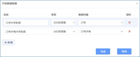 单击页面制作区右上角的显示齿轮图标的设置按钮,在弹出的下拉菜单中,选择“共享数据配置”命令。打开共享数据配置对话框,如图5-12所示。在这里添加共享数据集,并设置共享数据集名称。