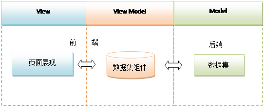 页面的展现和交互一般来说分为“数据驱动”与“事件驱动”。数据驱动在一定程度上弥补了事件驱动的不足。先说事件驱动,一个很典型的例子就是jQuery。用jQuery开发的页面执行初期就像这样:通过特定的选择器查找到需要操作的节点→给节点添加相应的事件监听,响应用户操作,效果是这样:用户执行某事件(单击,输入等)→调用JavaScript来修改节点。这种模式,对于业务需求简单的页面来说没什么问题。只是现在前端越来越复杂,光用这样的模式已经满足不了很多大型项目的需求。另一方面,找节点和修改节点效率很低。因此出现了数据驱动模式MVVM,执行初期就像这样:读取模板,同时获得数据,并建立VM(view-model)的抽象层→在页面进行填充,要注意的是MVVM 对应了三个层,M - Model,可以简单的理解为数据层;V - View,可以理解为视图,或者网页界面;VM - ViewModel,一个抽象层,简单来说可以认为是V层中抽象出的数据对象,并且可以与V和M双向互动(双向绑定)。针对用户的操作,大致是这样:用户执行某个操作→反馈到VM处理(可以导致Model变动)→VM层改变,通过绑定关系直接更新页面对应位置的数据。MVVM结构如图5-1所示。