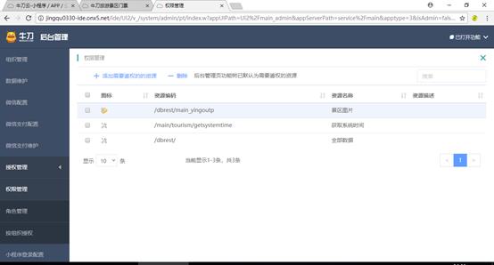 系统中的权限分为访问数据的权限、调用服务的权限和管理后台的功能权限。在“权限管理”功能中声明哪些资源是需要鉴权的,不需要鉴权的资源可以直接访问,需要鉴权的资源在获得权限后,才能访问。这其中管理后台的功能权限已默认为需要鉴权的资源。