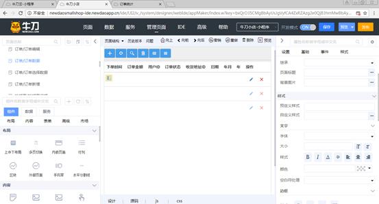系统为每个动态数据集和静态数据集生成3个维护页面,分别是列表页、新增页和编辑页。这些页面显示在数据维护功能中,且页面都是可修改的。这些页面在页面栏的数据维护分组中,打开页面,即可在设计区进行修改,如图7-12所示。
