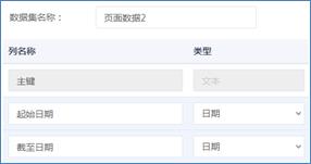 | 输入框 | 列 | 绑定数据列=页面数据2. 起始日期 或 截至日期 数据格式=yyyy-MM |