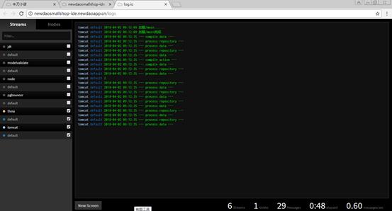 牛刀云提供一个日志跟踪功能,显示系统运行时产生的各种日志,例如:页面编译日志、服务运行日志和制作台运行日志等。日志跟踪功能界面如图10-8所示。