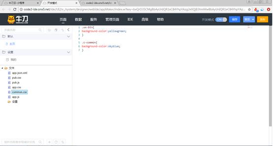 在页面制作区的“样式库”中,可以定义通用样式,在任何页面中都可以使用这些样式。通用样式存储在model/UI2/main/common.css文件中,如图14-8所示。页面中的组件使用通用样式后,系统在页面中自动增加对common.css的引用。因此,定义公共样式简单的做法是:在通用样式文件中自定义样式,在组件的“自定义属性”中选择自定义的样式。
