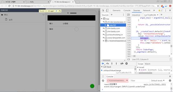 打开主页的JS文件,找到输入框值改变事件onInputValuechange,在第一行添加debugger;语句,保存文件,代码如下: