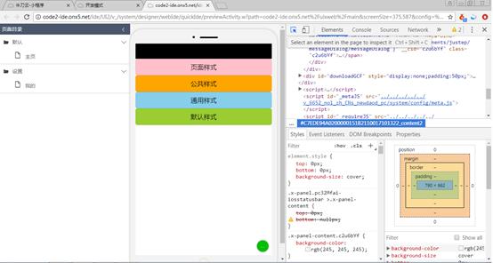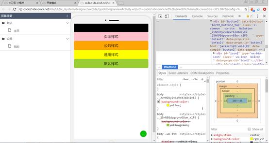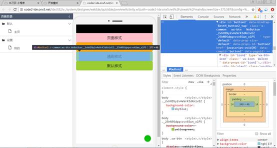 图14-15展示了“通用按钮”已经被选择,在Styles页里面列出了当前选择元素的全部样式。直接调整这些样式,可以在预览页面中直接看到效果。例如:将background-color:skyblue;改为background-color:yellow,可以看出当前选中元素的背景色已经变成黄色,如图14-16所示