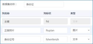 | 身份证数据集 | 数据组件容器 | 自动模式=自动新增 |