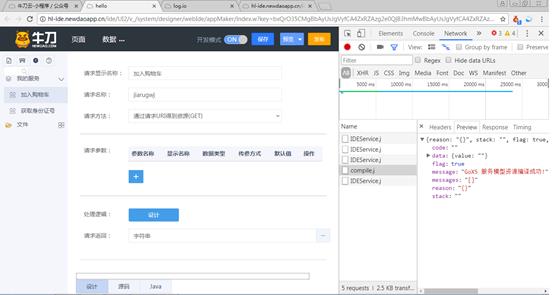 这其中如果没有看到compile.j请求,需要修改请求方法,再保存,以刺激编译。如果compile.j返回的状态码不是200,进入制作台的高级页面,重启控制台。如果compile.j请求返回的message是失败,则检查JAVA代码。