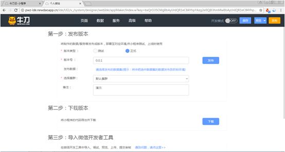 应用升级的方法是:单击制作台顶部导航栏中的“发布”按钮,打开“发布”页面,再次进行正式发布。如图19-2所示。