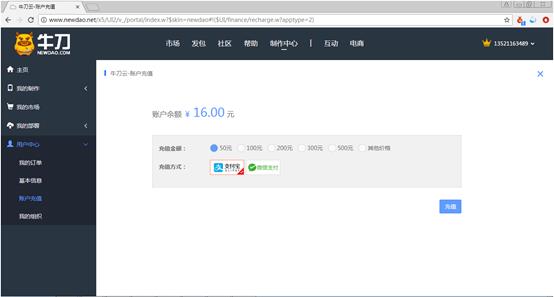 选择续费期限,单击“续费”按钮即可完成续费。购买主机续费需使用账户余额,如果账户余额不足,进入“用户中心”→“账户充值”中充值,如图19-10所示。