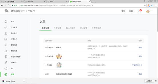 小程序提供了小程序码,用于扫描后打开小程序。小程序在发布后,在设置页面中下载小程序码,如图20-14所示。