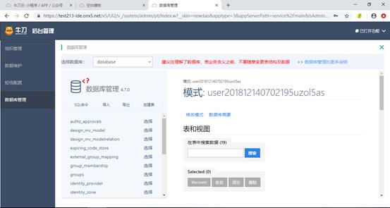 如果在架构中设置使用外部数据库,也可以在架构页面中进入数据库管理工具,如图23-4所示。